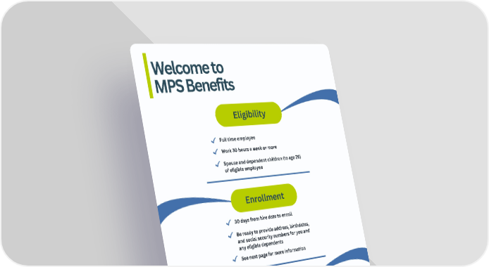 Welcome to MPS Benefits Eligibility Enrollment Important Full time employee Work 30 hours a week or more Spouse and dependent children (to age 26) of eligible employee 30 days from hire date to enroll Benefits will become active at the beginning of the month Be ready to provide address, birthdates, and social security numbers for you and any eligible dependents See next page for more information You have coverage on the effective date even if the ID card has not yet arrived If you have any problems, please contact the carrier first, then escalate to INS if needed